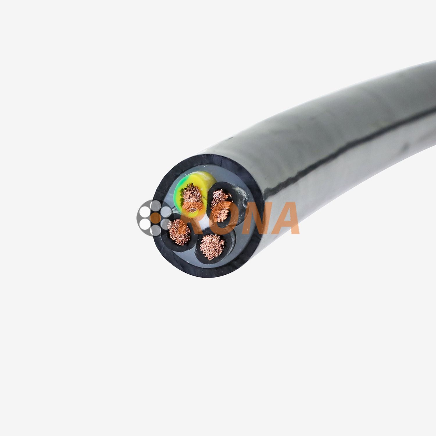 This HFMUP 4G6mm² Shielded PUR Chain Cable is engineered to deliver robust power and reliable signal transmission for high-demand tools operating within cable carriers. Featuring a 4-conductor + ground (4G) structure with a substantial 6mm² cross-section for power conductors, it incorporates overall braided shielding for superior electromagnetic compatibility (EMC). Encased in a tough PUR jacket, it excels in the challenging environments of automated tooling systems requiring constant movement and resistance to industrial contaminants.